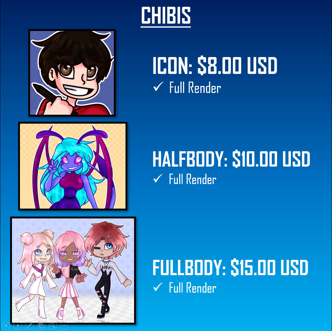 Descripción del Servicio• Estas comisiones están diseñadas para uso personal y no comercial. Pueden incluir ilustraciones, emojis personalizados, chibis, animaciones, etc.1. General